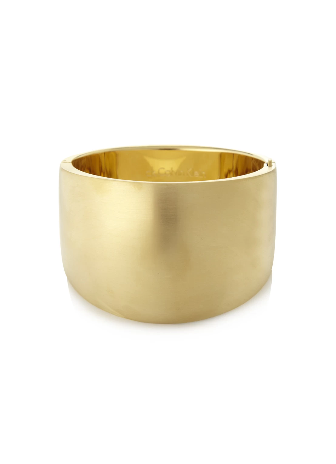 CK armband van staal in matte kwaliteit. Deze armband loopt naar de voorzijde wijd uit en sluit met een vrijwel onzichtbare sluiting aan de rechterzijde. Aan de binnenzijde is de merknaam ingegraveerd.