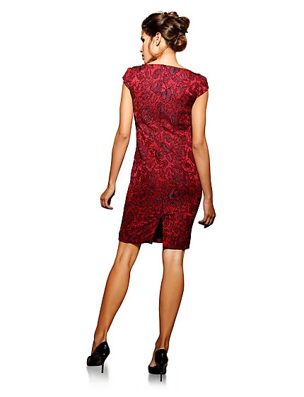 De vrouwelijke rondingen worden door de eenvoudige belijning heel mooi benadrukt! Met mooie plooien bij de ronde hals. Helemaal tegengevoerd. Met ritssluiting achter. Lengte ca. 94 cm. Van 94% polyester, 6% polyamide. Voering: 97% polyester, 3 Elastan. Wasbaar.