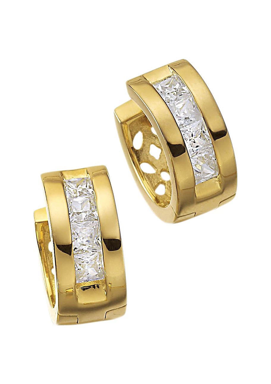 Oorbellen. Van zilver (925), verguld. Met zirkoon in pavevatting. Breedte ca. 6 mm.