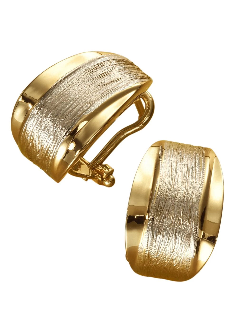 Oorstekers. Gesatineerde glanzende oorbellen met excellente clipsluiting. Van 8 kt geel.