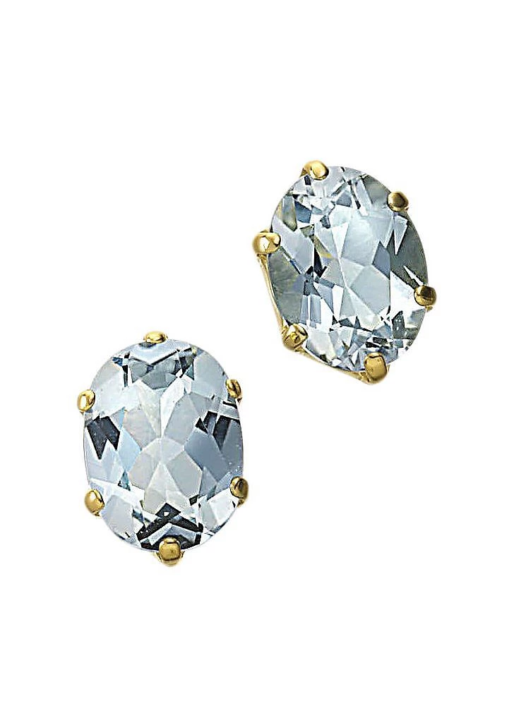 Oorstekers, 8 kt. Met 2 blauwtopazen (elk ca. 6×8 mm).