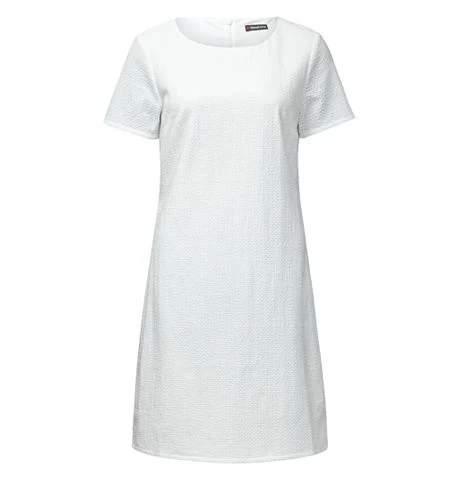 Geborduurde mini-zomerkjurk Ina Stijlvolle, eenvoudige zomerkjurk in een fijn geborduurde netlook met korte mouwen: het model Ina van Street One. De stijlvolle, eenvoudige mini-zomerkjurk is iets langer en eindigt een krappe handbreedte boven de knie. De fijne stof van katoen is compleet subtiel geborduurd in een netlook in bijpassende kleuren en krijgt zo een wafelachtig gestructureerde uitstraling. Ondoorzichtigheid en een goede pasvorm worden gegarandeerd door een mouwloze voering van jersey. Met een subtiele taillering, een wijde ronde hals, korte mouwen en de zeer fijne rits aan de achterkant onderstreept de zomerkjurk uw vrouwelijke silhouet perfect en is de lichte, effen gekleurde style steeds weer nieuw te combineren tot zowel casual als romantische en zowel rockachtige als elegante looks. Eenvoudige, stijlvolle mini-zomerkjurk met korte mouwen. Ondoorzichtig door de zachte voering van jersey. Subtiel getailleerd, met een zeer fijne rits aan de achterkant. Afmetingen bij EU-maat 36 ca.: lengte 90 cm, breedte 43 cm, taille 41 cm. Materiaal: Bovenstof: 100% katoen. Voering: 100% polyester. Materiaal: Bovenstof: 100% katoen. Voering: 100% polyester. Bleekvoorschrift: Niet bleken Strijkvoorschrift: Niet heet strijken (1 punt) / Koud strijken / Lauw strijken Onderhoudsvoorschrift: reiniging / reinigen / Normale procedure Droogvoorschrift: Niet in de droogtrommel drogen Wasvoorschrift: Wolwasprogramma / Speciaal programma voor delicate was 30° Doelgroep: vrouwen